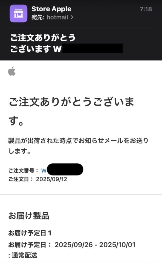 2025/09/16(ご注文ありがとうございますメールが届いた)