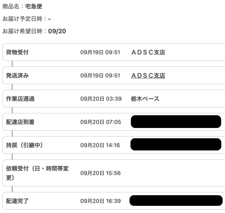 ADSC支店で荷物受付されました。(ADSC支店とはApple専用のヤマト運輸の支店)