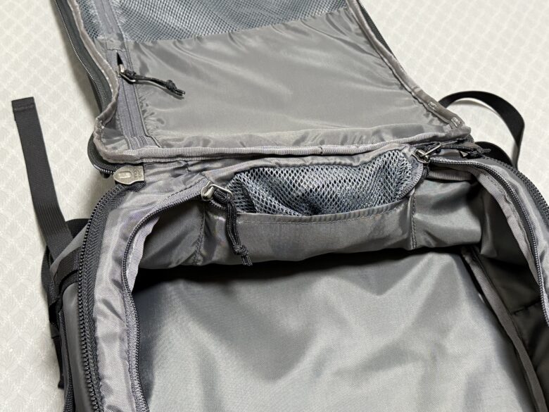 メイン収納には大きなメッシュポケットがあります。
