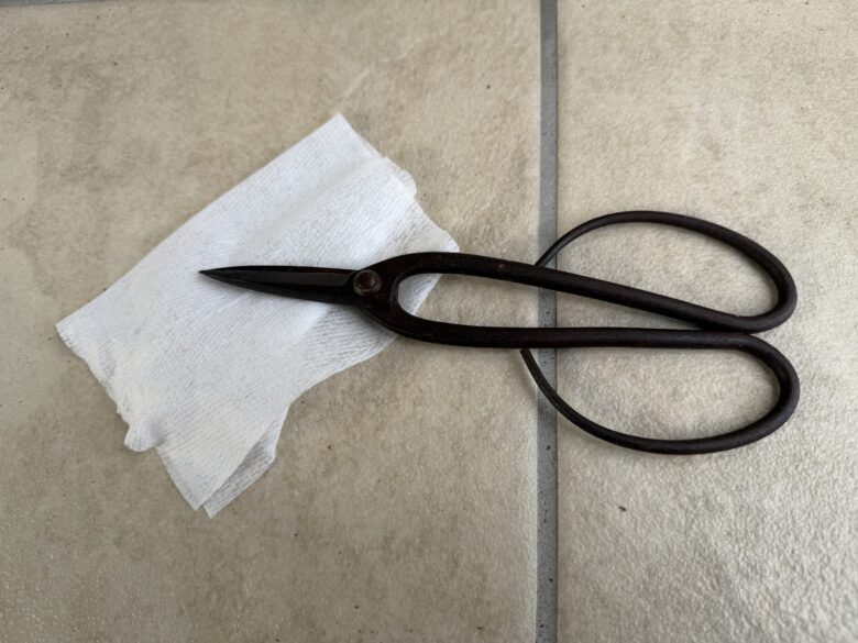 剪定ばさみはアルコールティッシュでキレイに拭きました。
