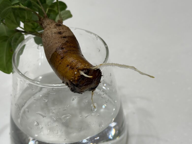 土で育った根っこをそのまま水につけると根腐れしてしまうそう。
