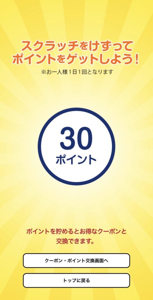 2025年12月からフライングガーデンのアプリにあるスクラッチゲームの特典が、クーポンからポイントに変更になりました