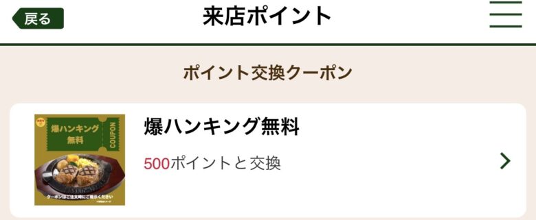 ポイント交換クーポンにはドリンクバー無料・ポテトフライ無料・ガーリックライス変更無料など色々あります