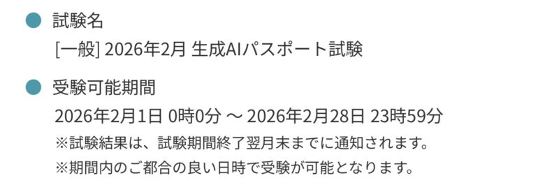 生成AIパスポート試験の過去の合格発表日をまとめました