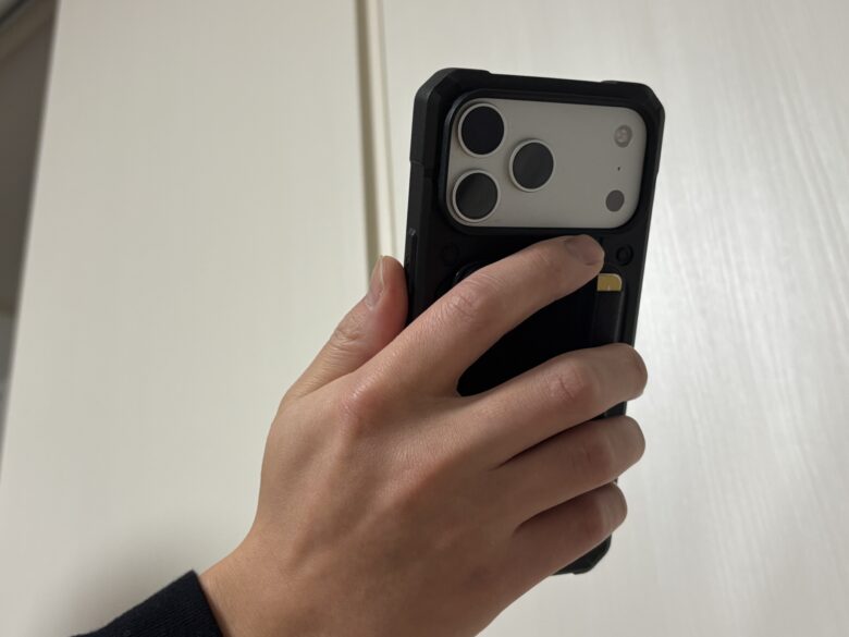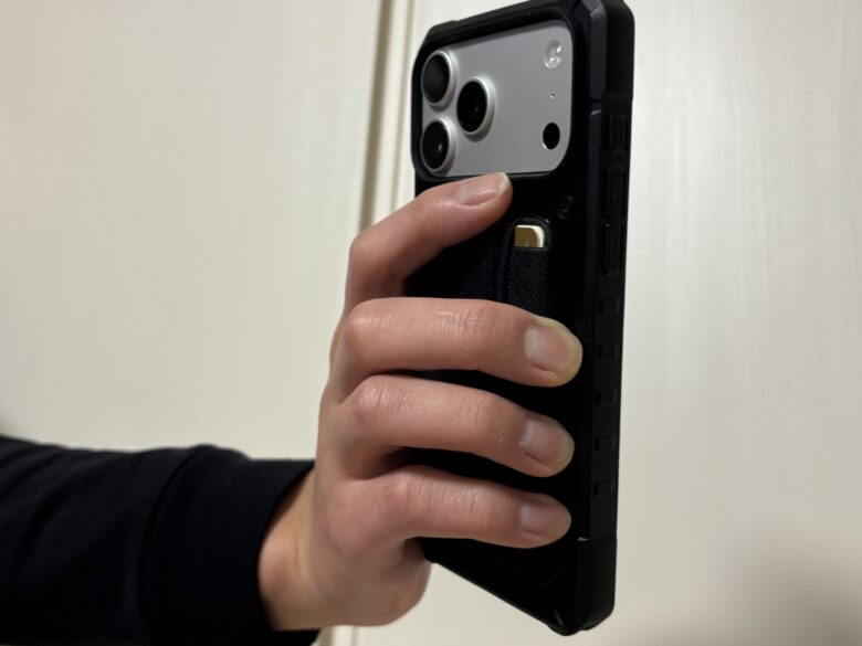 iPhone17ProMaxは大きいので、ちゃんと持たないと落とす可能性が上がりました。