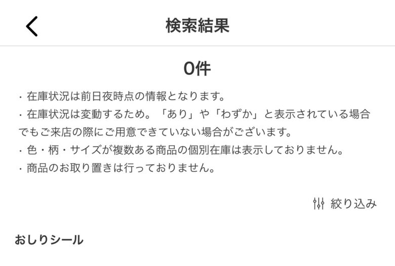 私がおしりシールを購入してから2週間後に行ってみたら売り切れでした